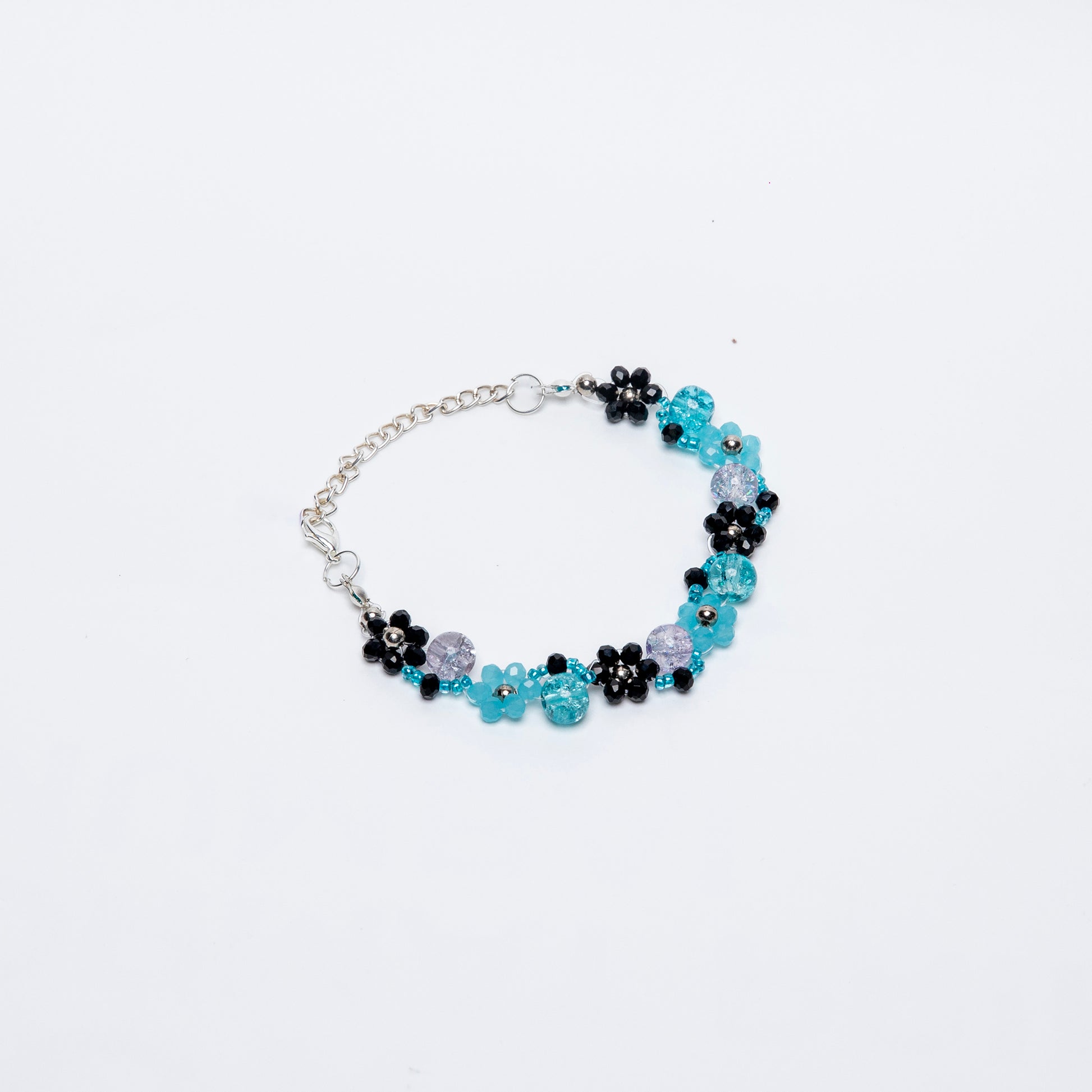 Ocean Bloom Beaded Bracelet – Handmade Aqua & Black Floral Jewelry