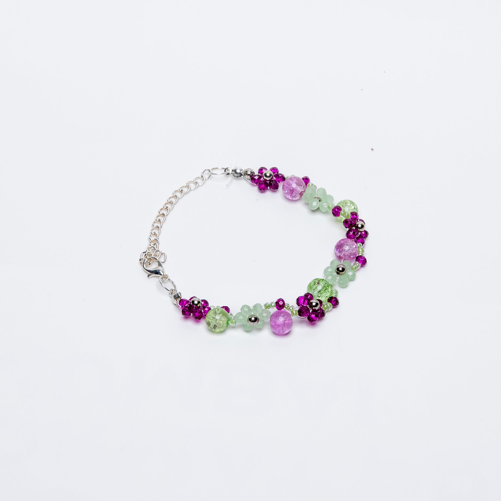 Spring Beaded Bracelet- Handmade Purple & Green Floral Jewelry