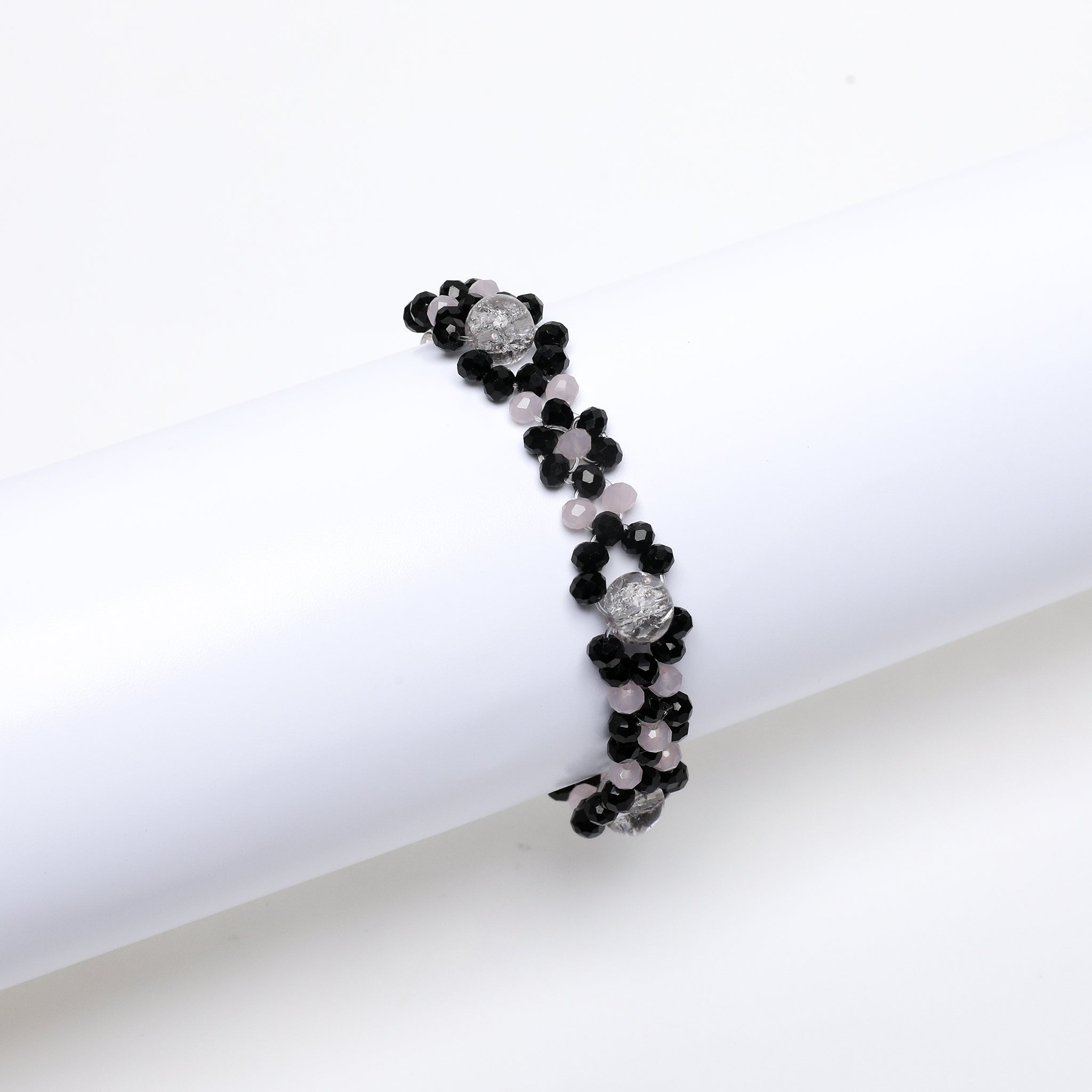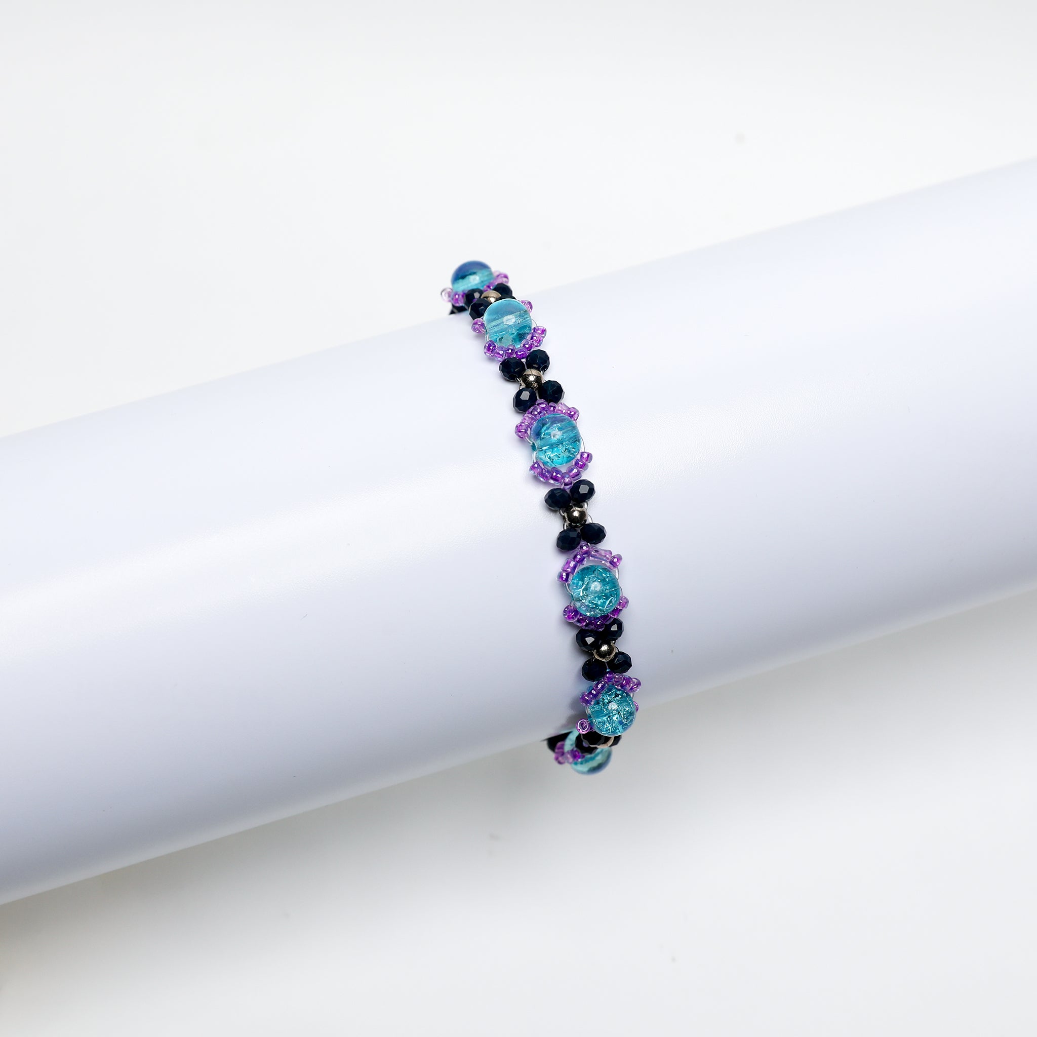 Ocean Bloom Beaded Bracelet – Handmade Aqua & Black Floral Jewelry