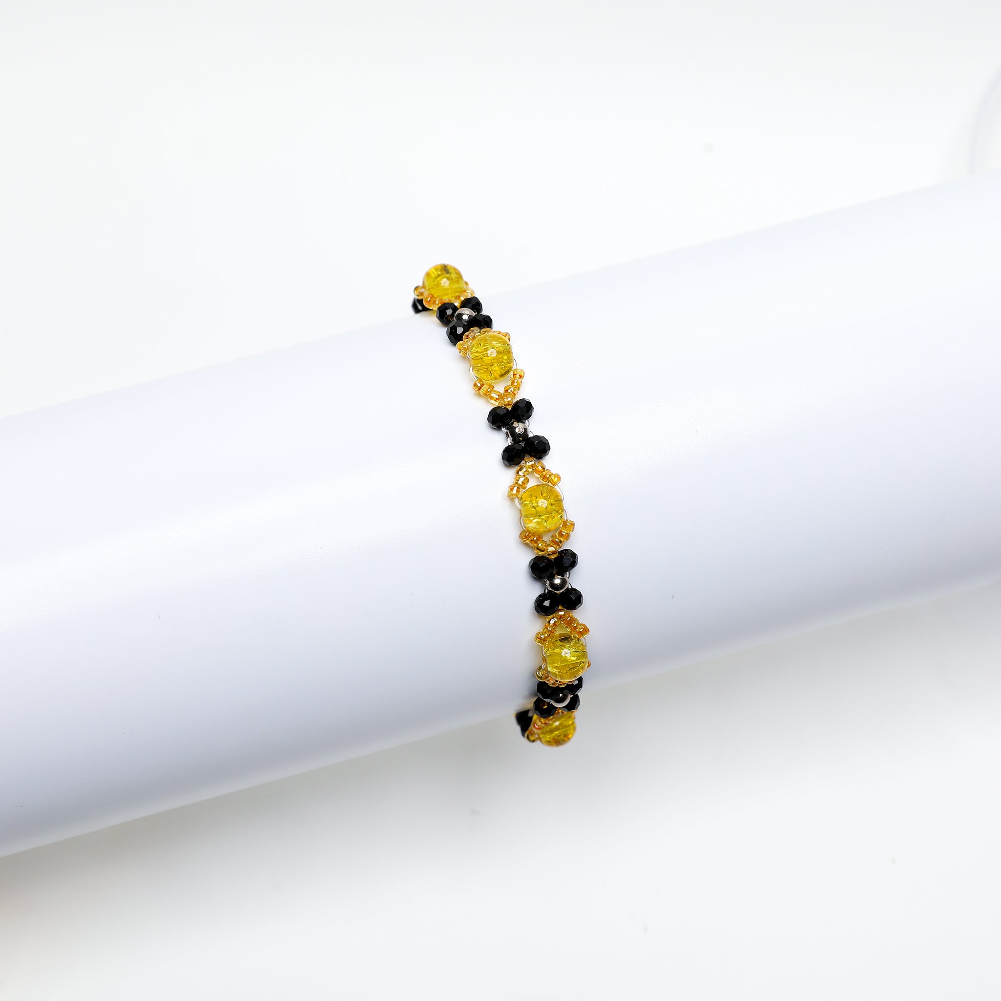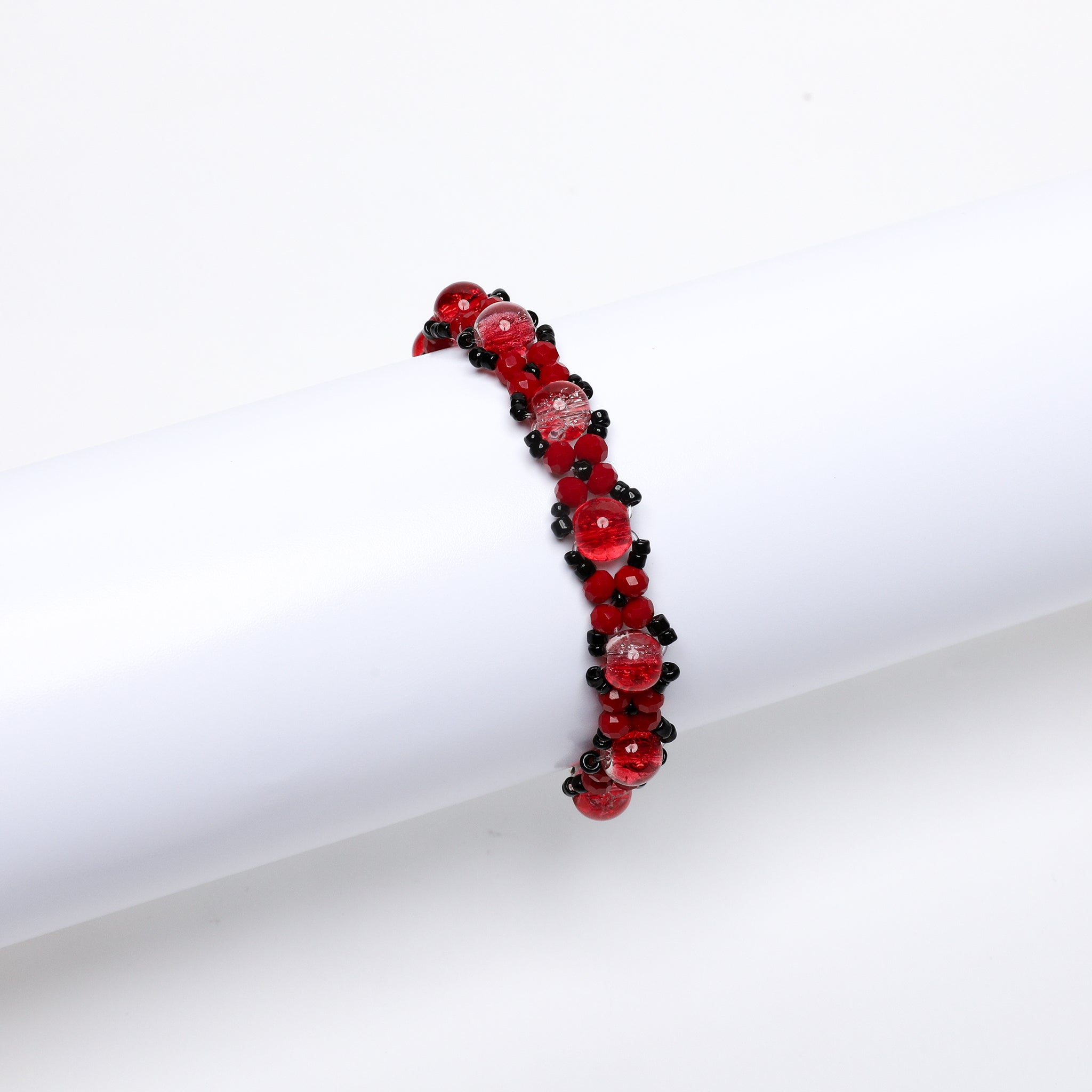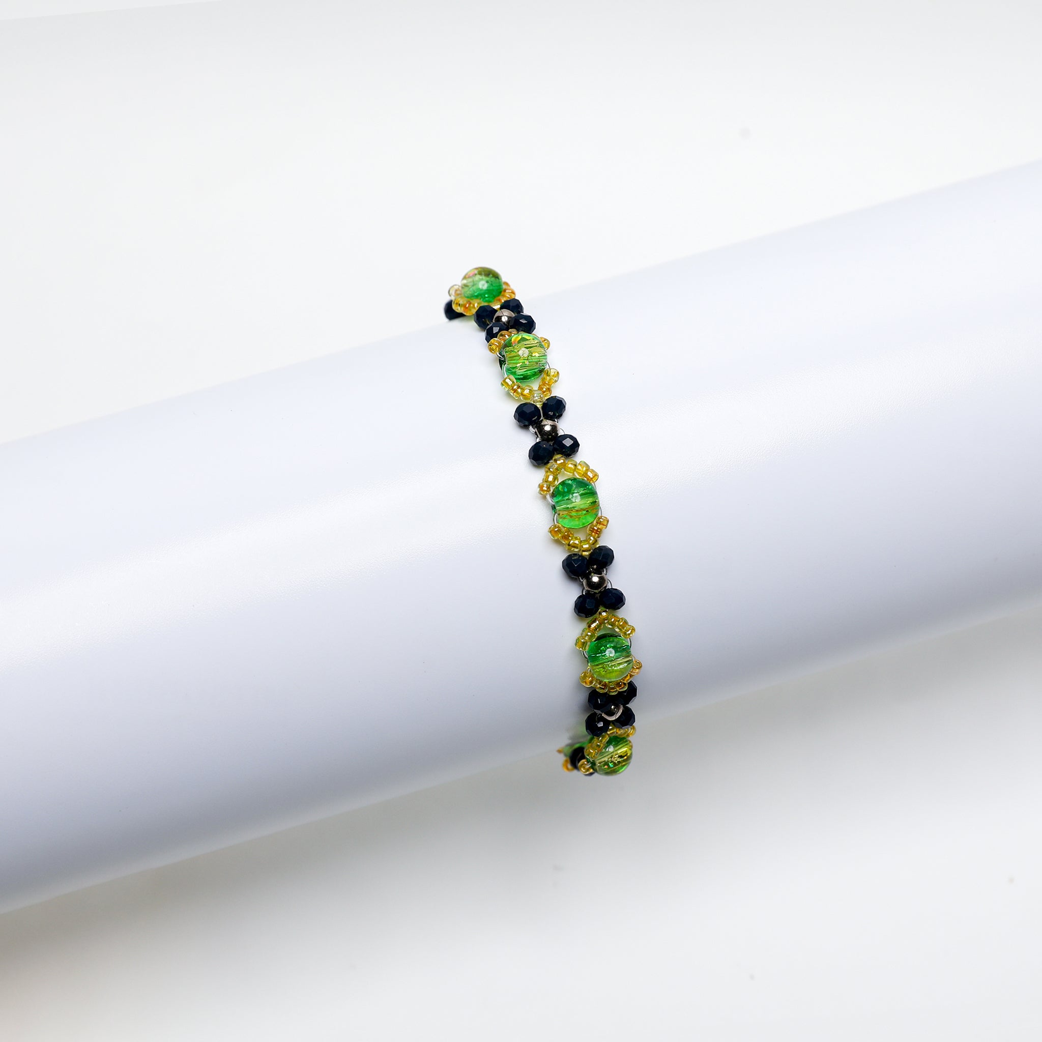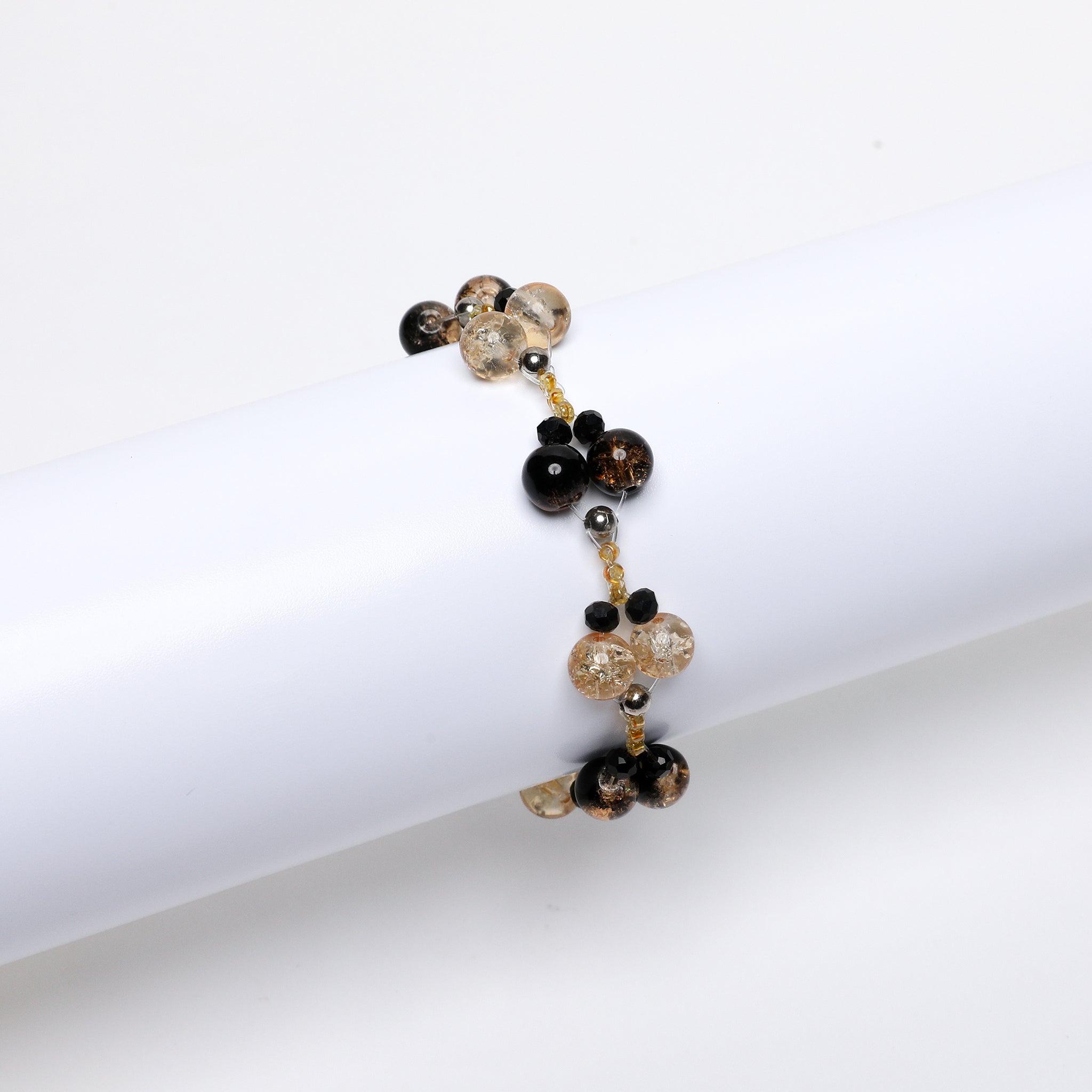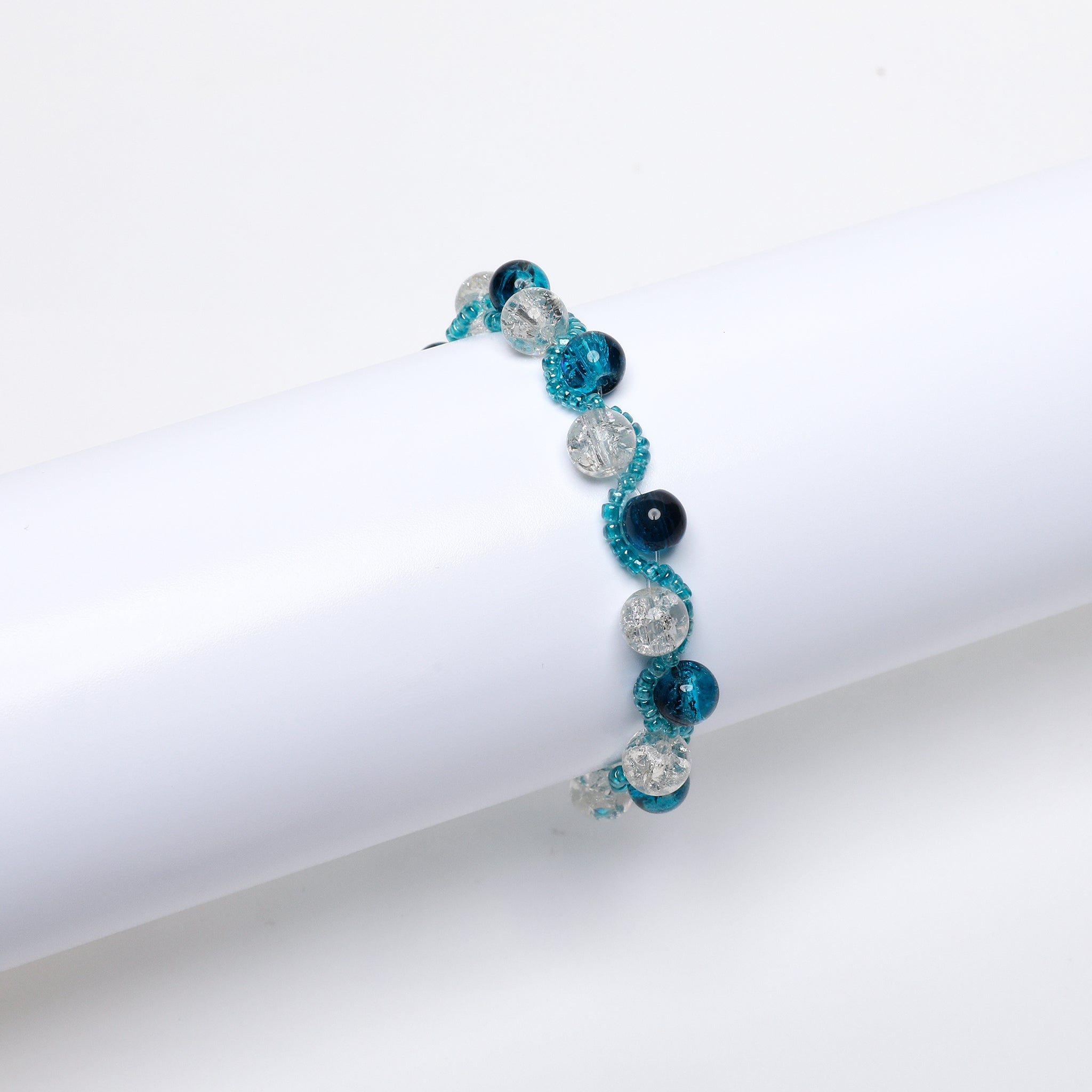 Shop Now: A dazzling lineup of handcrafted bracelets featuring vibrant crackle glass...