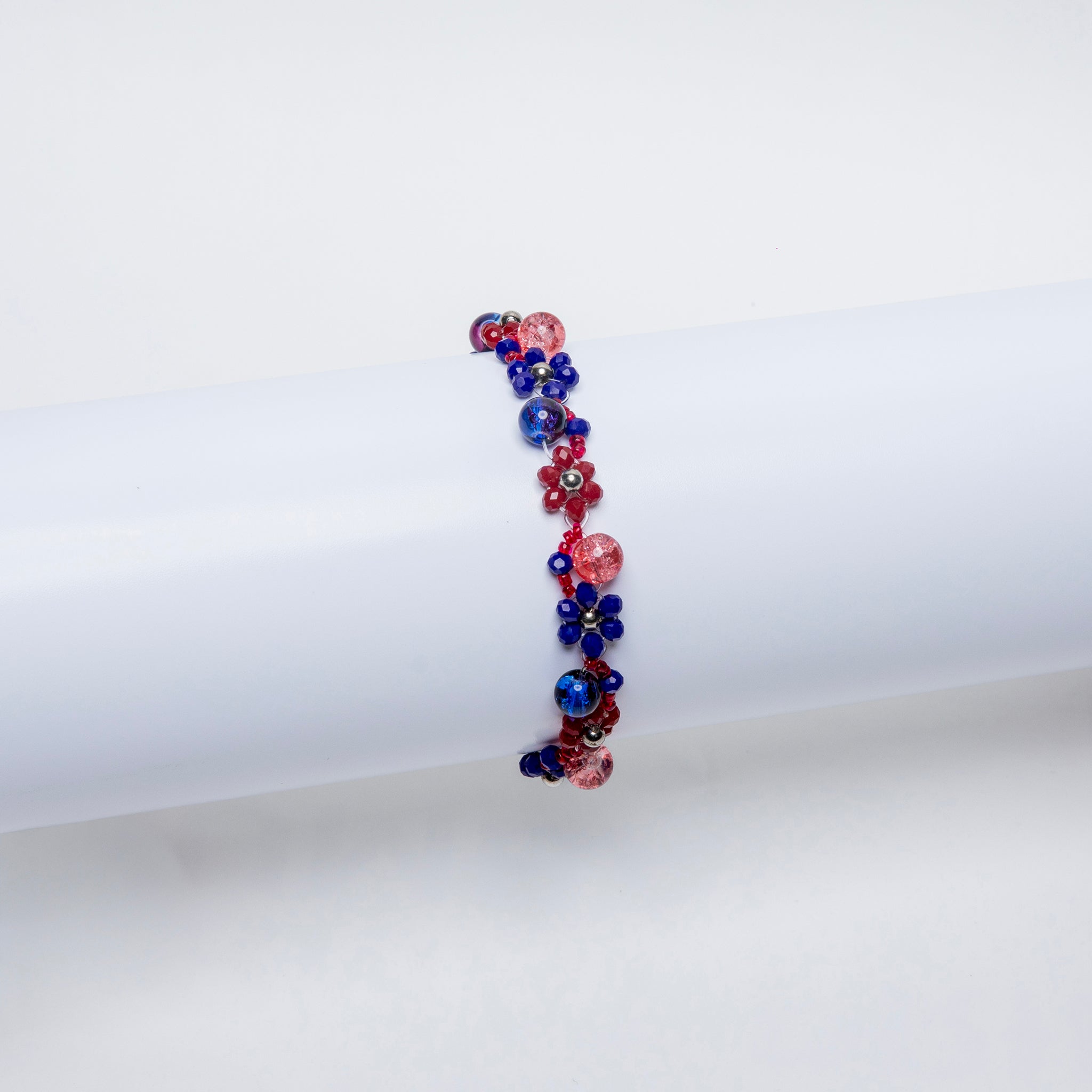 Blossom Charm Beaded Bracelet – Handmade Blue & Pink Floral Jewelry