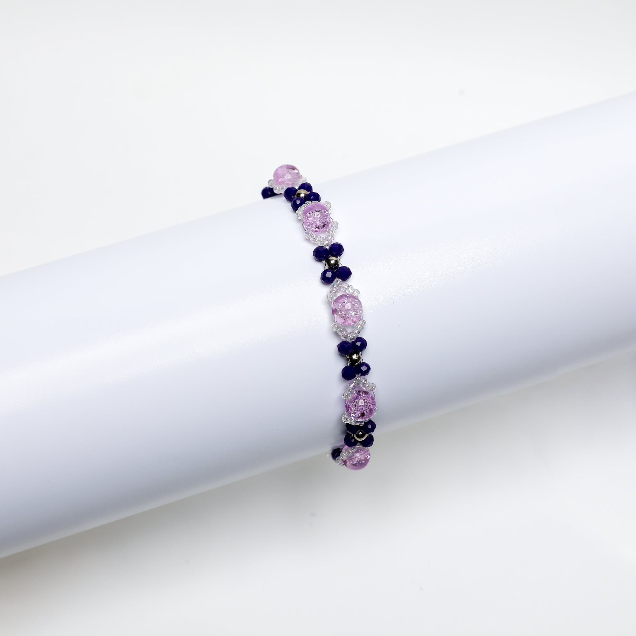 Blossom Breeze Beaded Bracelet-Handmade Pink, Aqua & Purple Floral Jewelry